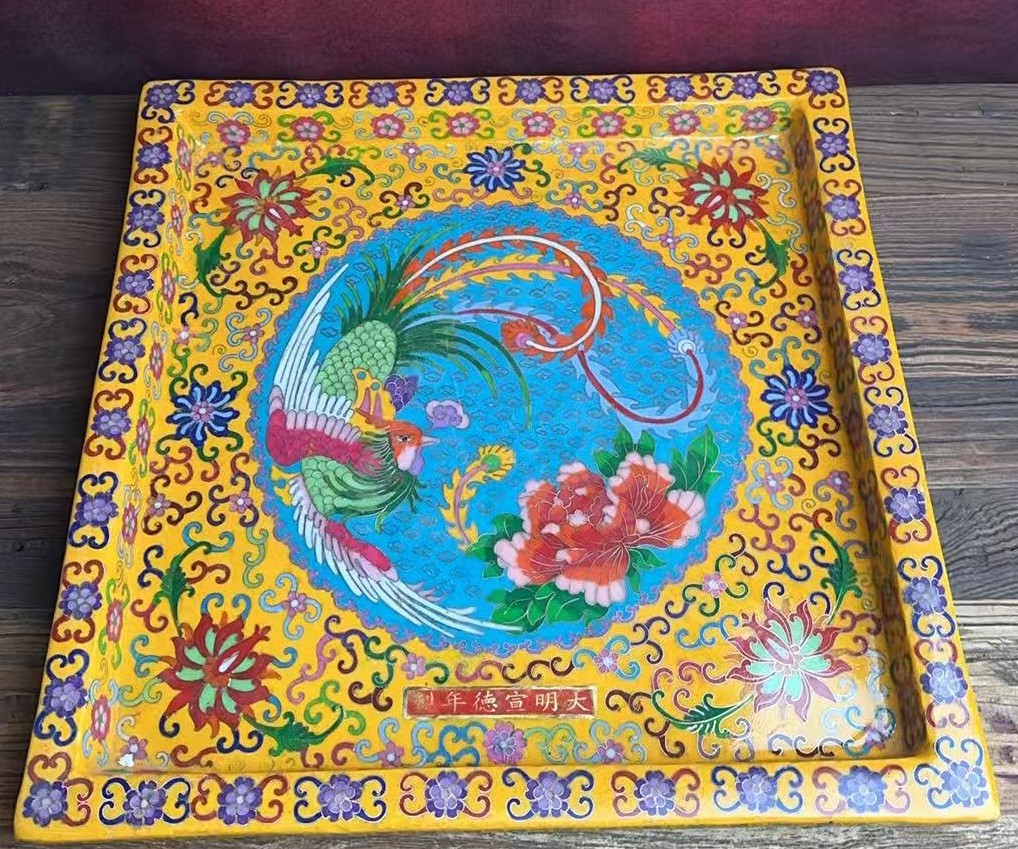 明宣德掐丝珐琅凤穿牡丹纹茶台