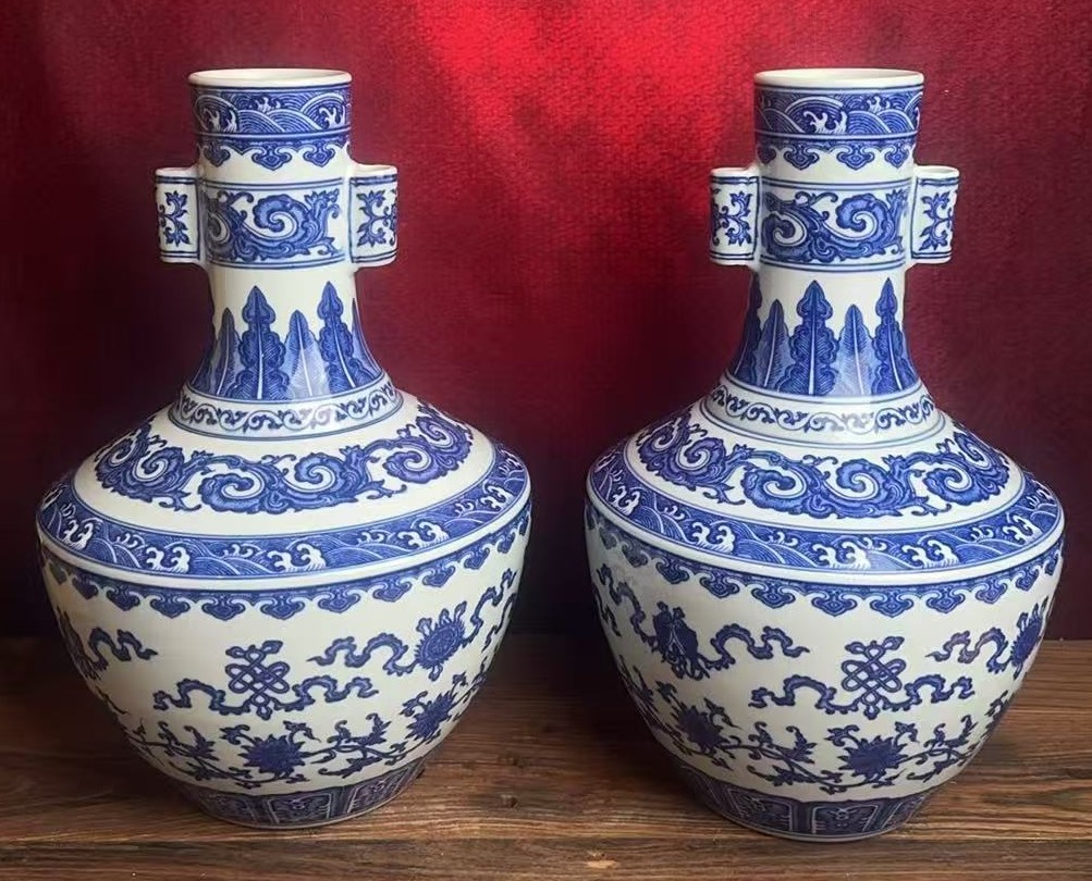 名称:清乾隆青花莲托八宝纹贯耳瓶