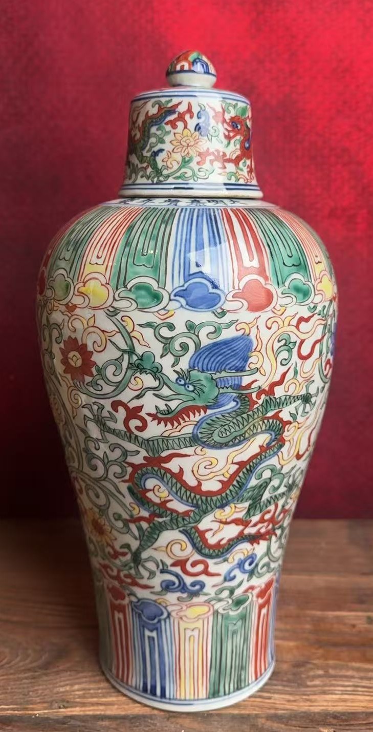 名称:明嘉靖青花五彩穿花龙纹梅瓶