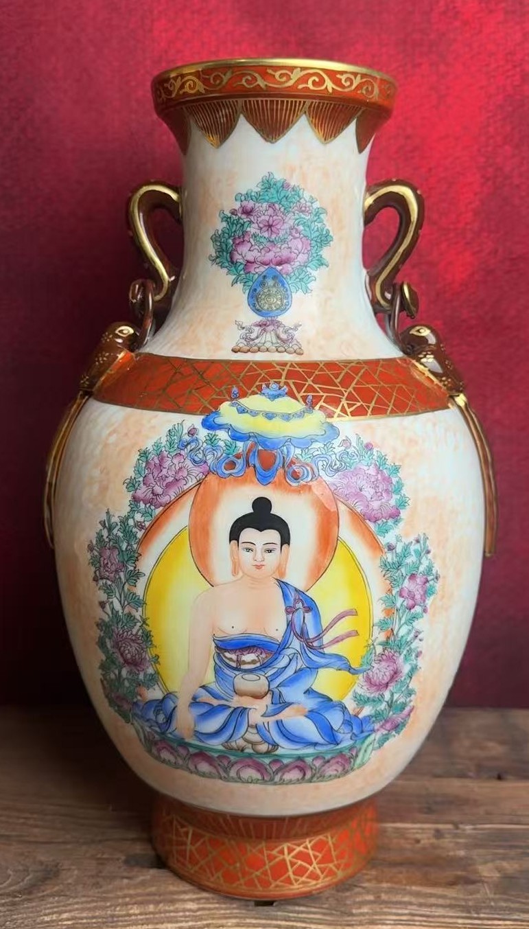 名称:清乾隆珐琅彩描金如意耳盘口瓶