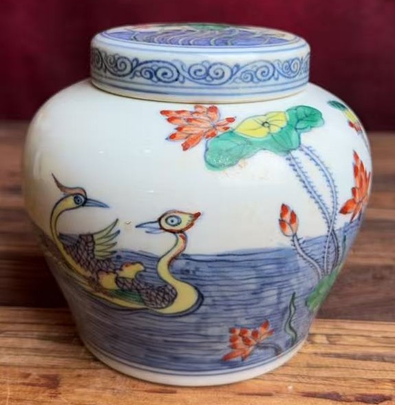 名称:明成化斗彩莲池鸳鸯纹盖罐