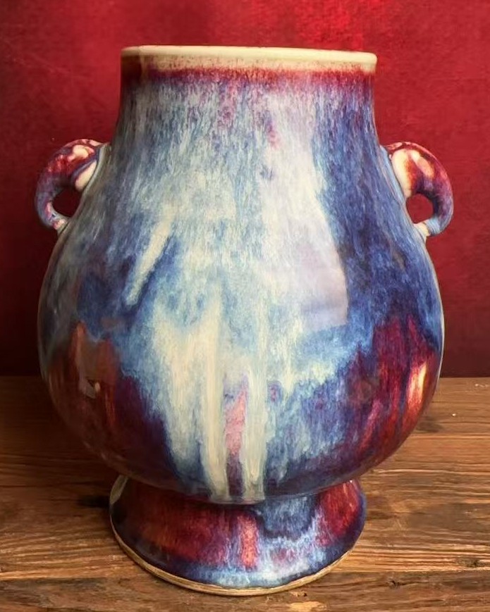 名称:清乾隆钧红釉象耳尊