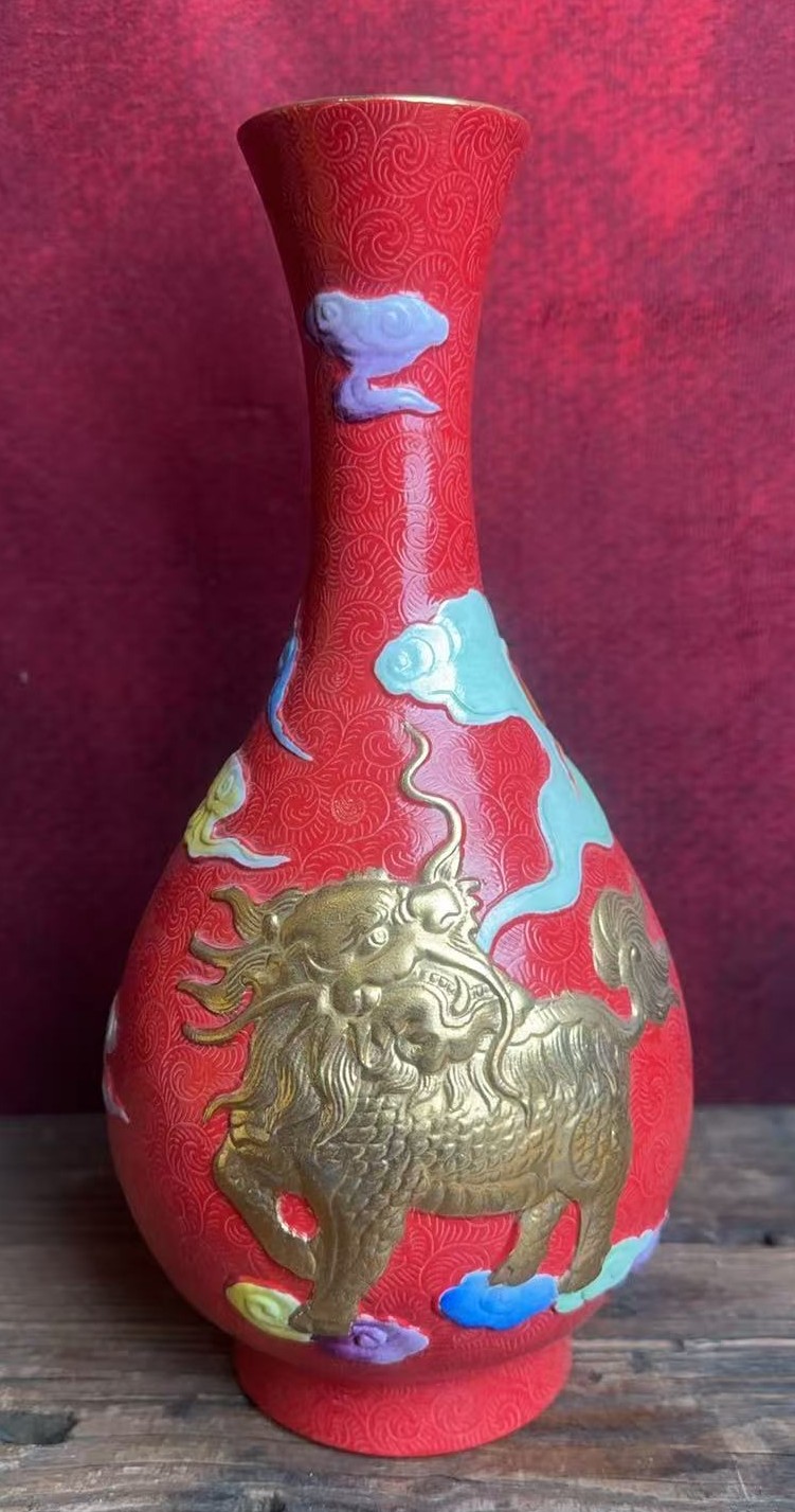 名称:清雍正轧道珐琅彩描金瑞兽纹长颈瓶