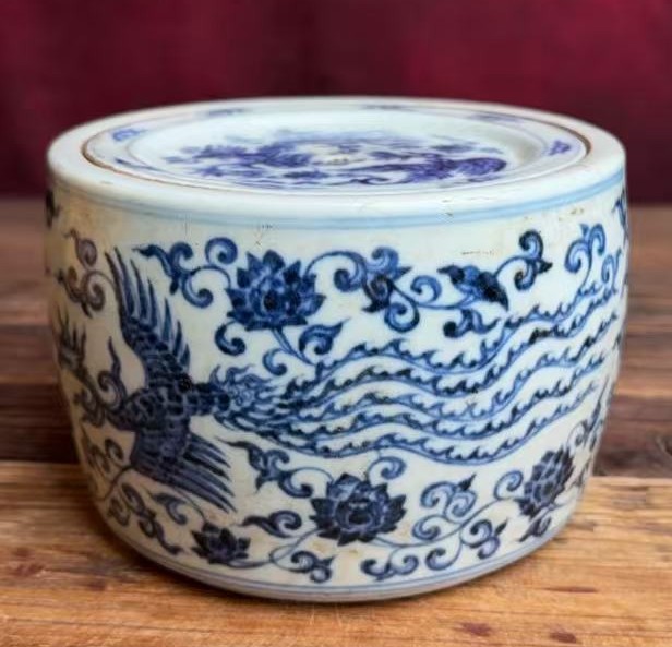 名称:明宣德青花穿花凤纹蛐蛐罐