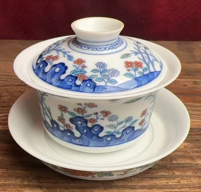 名称:清雍正斗彩洞石花卉纹盖碗