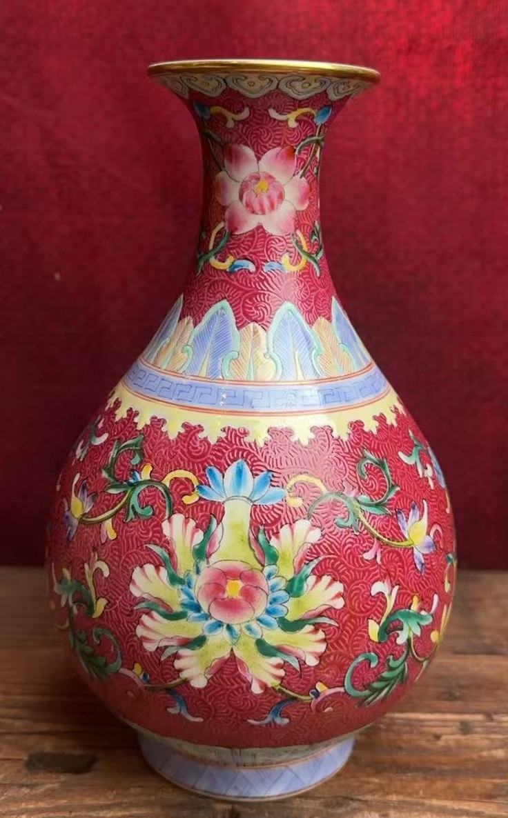 名称:清乾隆轧道珐琅彩花卉纹玉壶春瓶