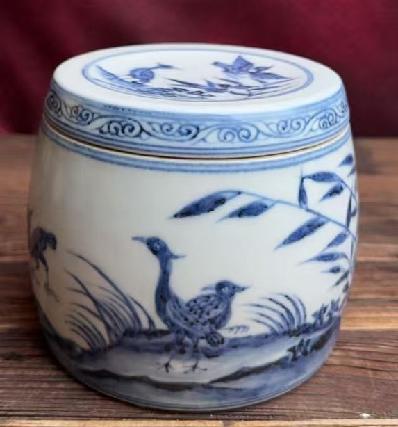 名称:明宣德青花芦燕纹蛐蛐罐
