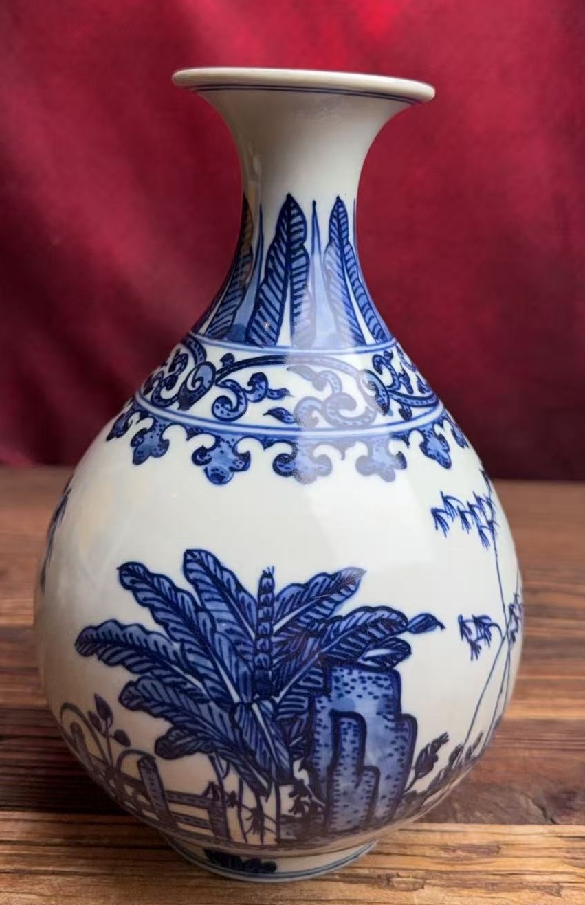 名称:清乾隆青花洞石芭蕉纹玉壶春瓶