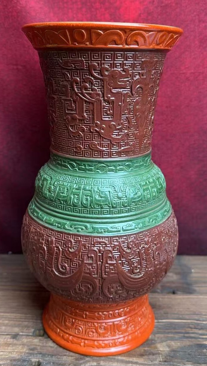 清乾隆仿漆釉浮雕龙凤纹花觚