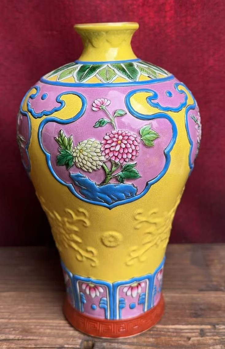 名称:清乾隆珐琅彩开窗花卉纹梅瓶
