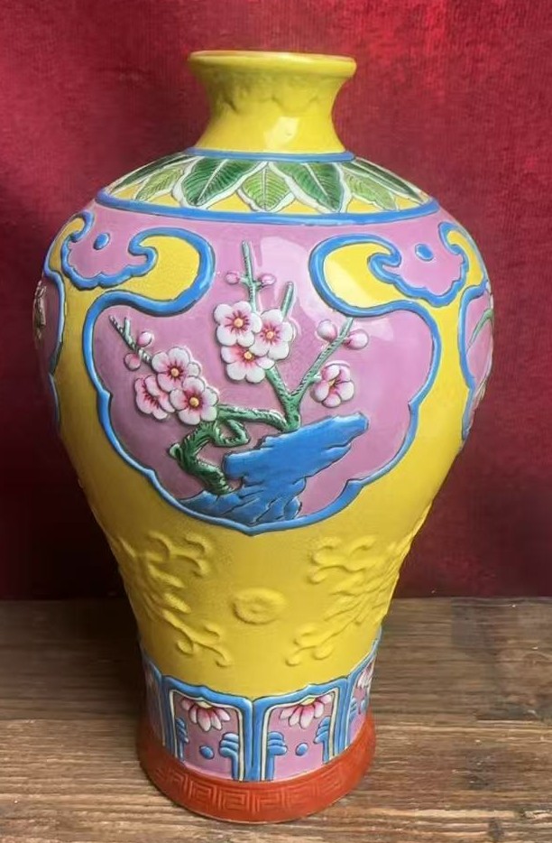 名称:清乾隆珐琅彩开窗花卉纹梅瓶