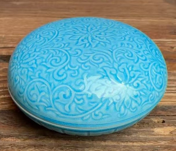 名称:清光绪蓝釉暗刻花卉纹盖盒