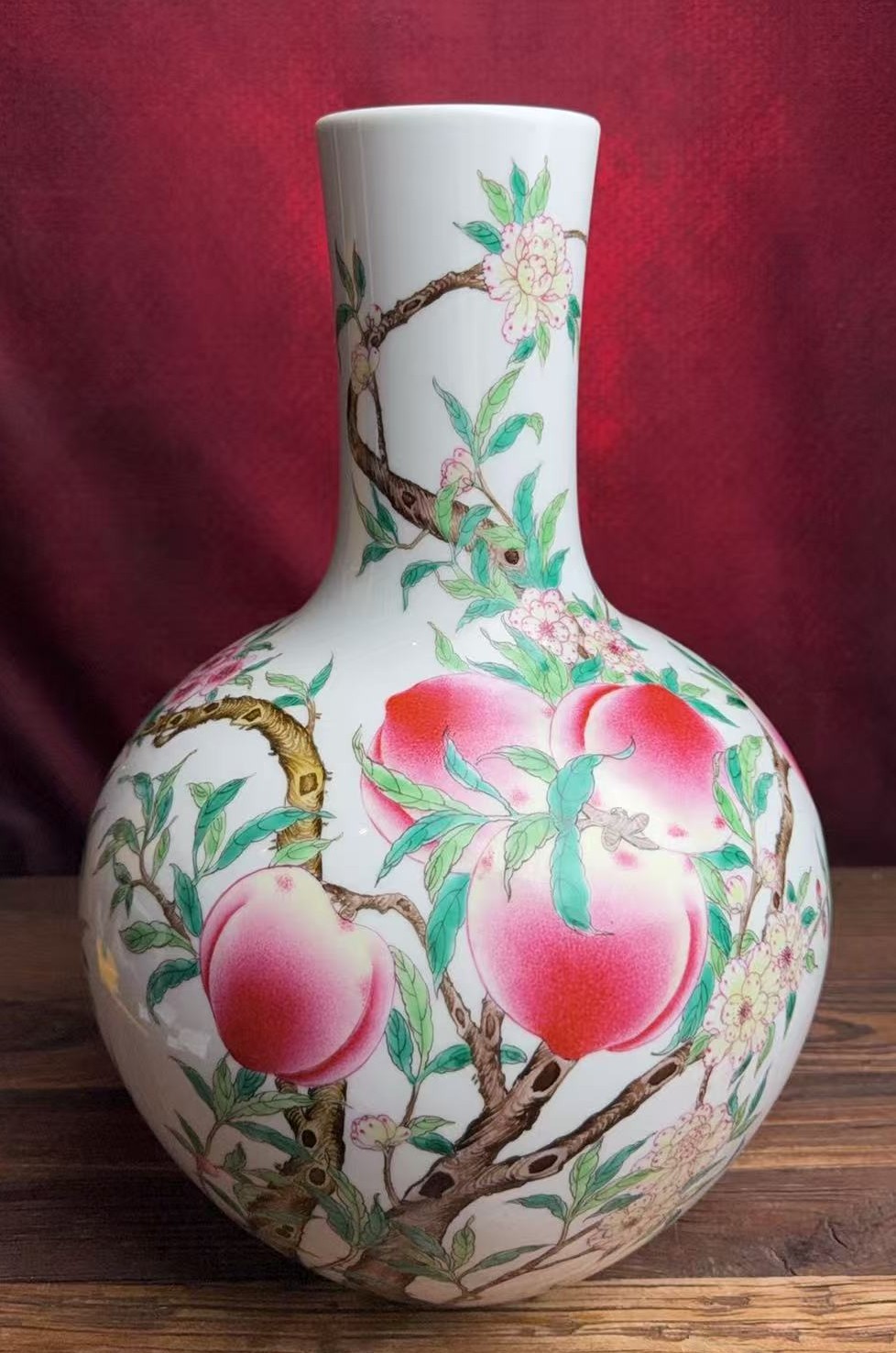名称:清乾隆珐琅彩寿桃纹天球瓶