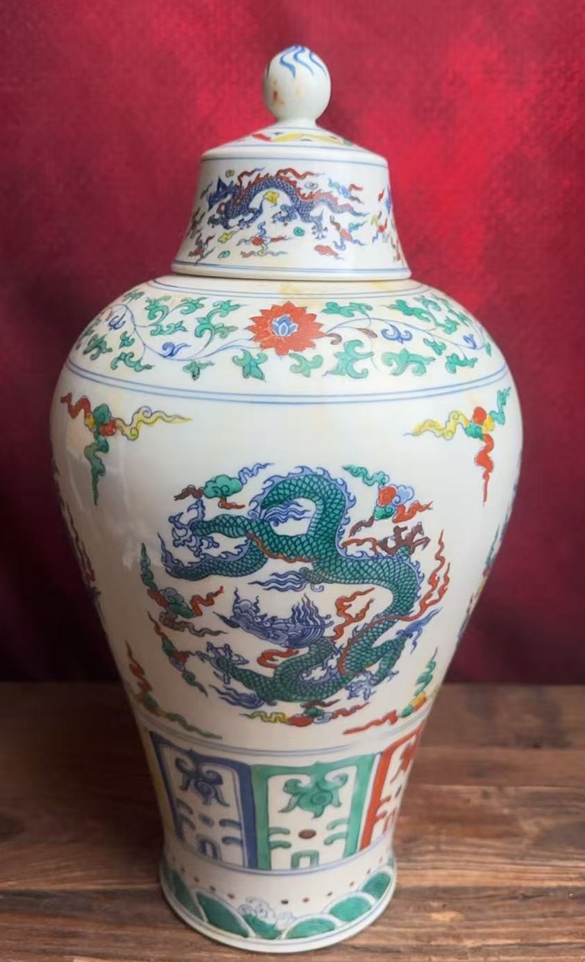 名称:明成化斗彩团龙纹梅瓶