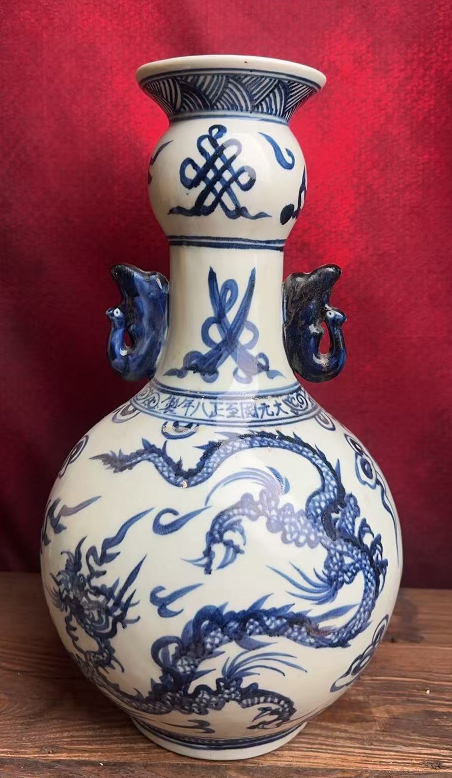 名称:元青花云龙纹双耳盘口瓶