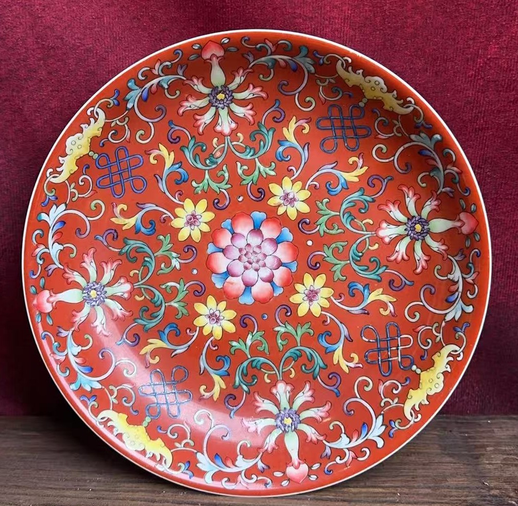 名称:清雍正珊瑚红地珐琅彩花卉纹赏盘