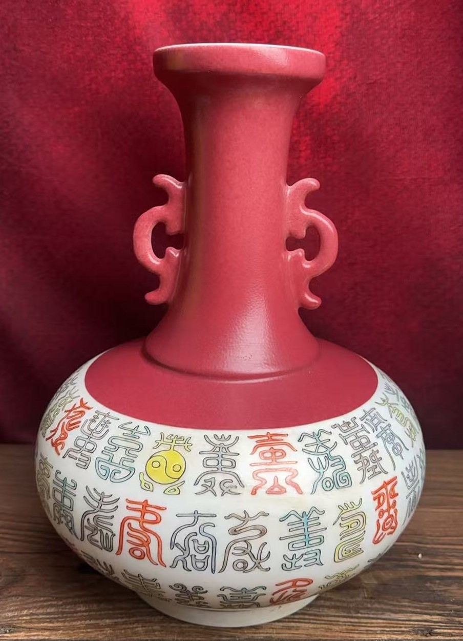 名称:清乾隆珐琅彩百寿纹双耳长颈瓶