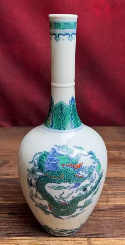 清雍正斗彩团龙纹长颈瓶