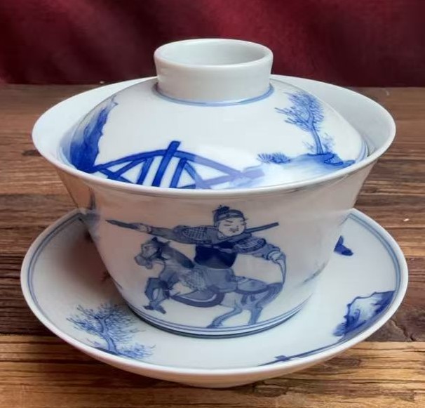 名称:清康熙青花刀马人物纹盖碗