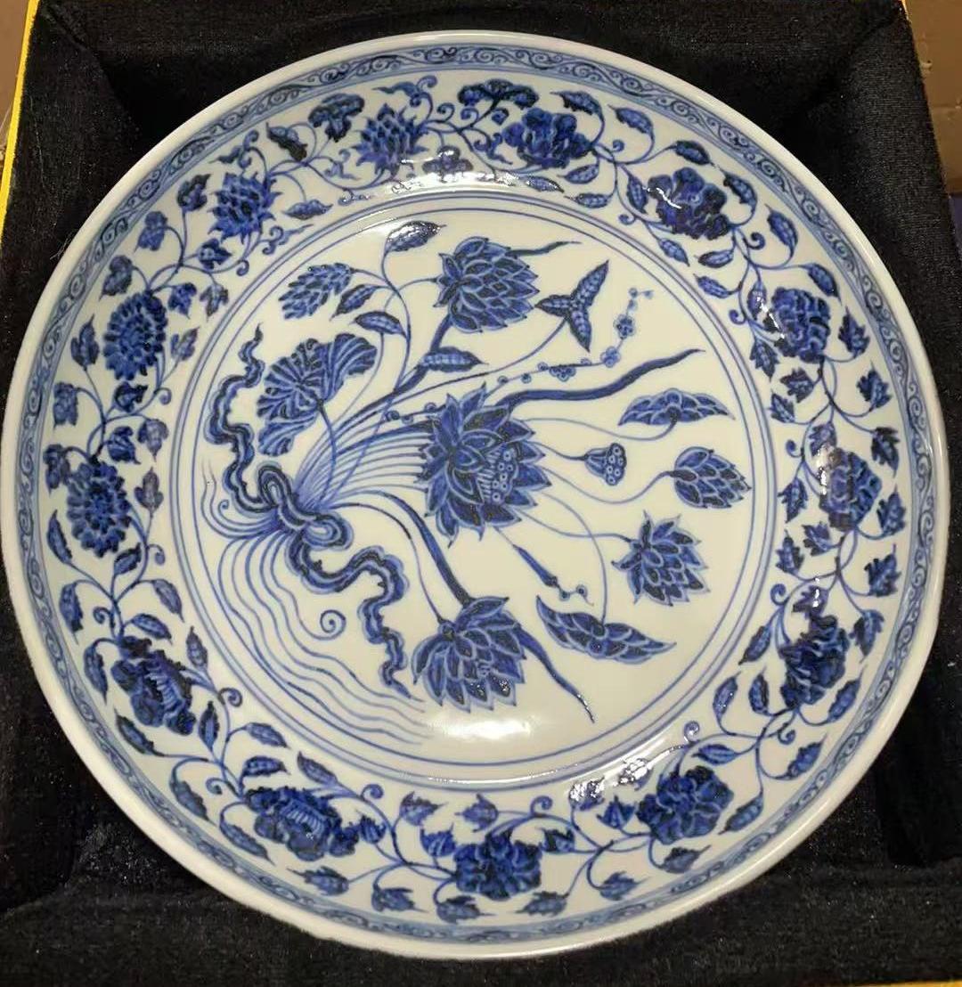 名称:元青花一束莲纹大盘