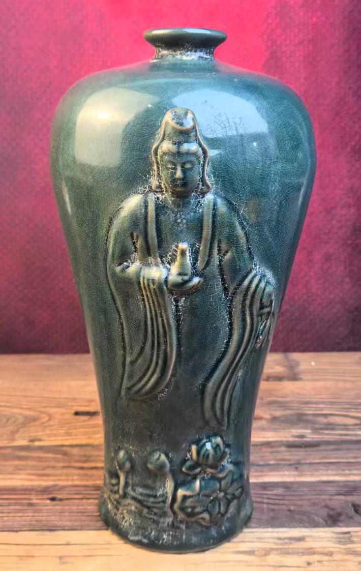 名称:柴窑浮雕观音梅瓶