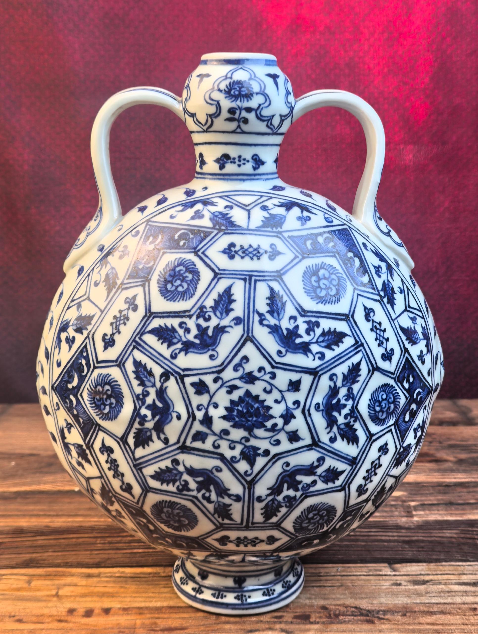 名称:明永乐青花开窗花卉纹抱月瓶