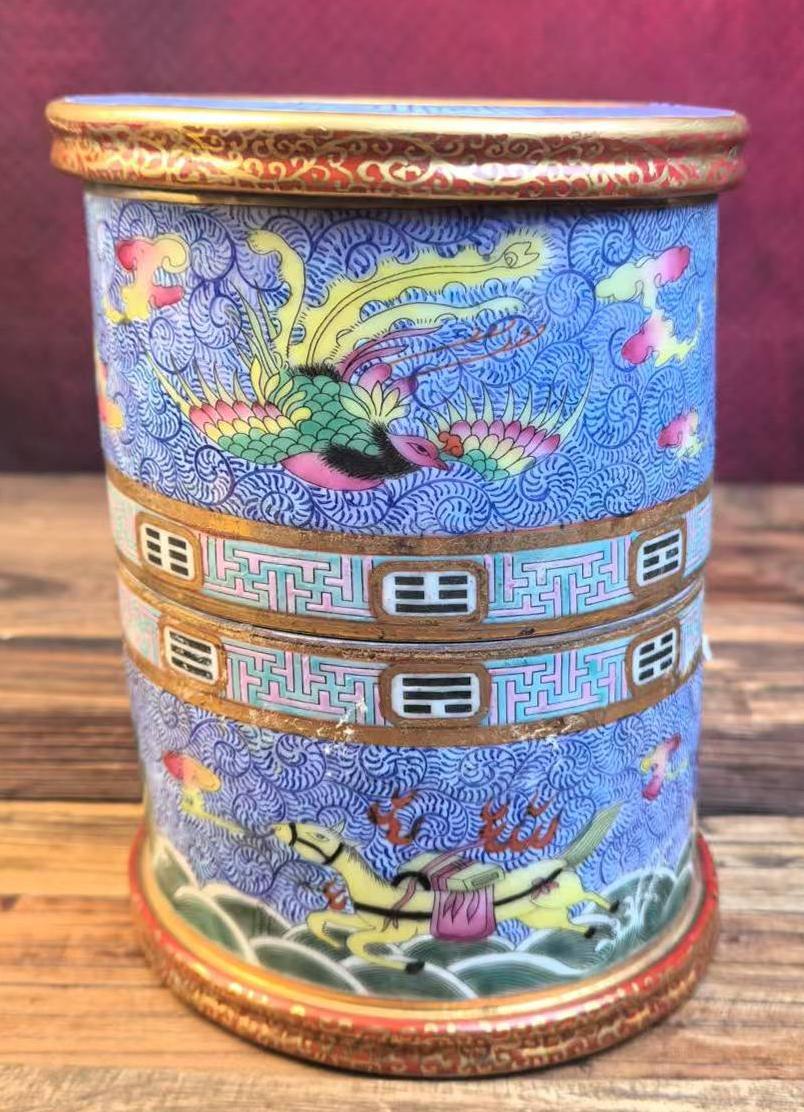 名称:清乾隆洋彩海马云凤纹旋转笔筒