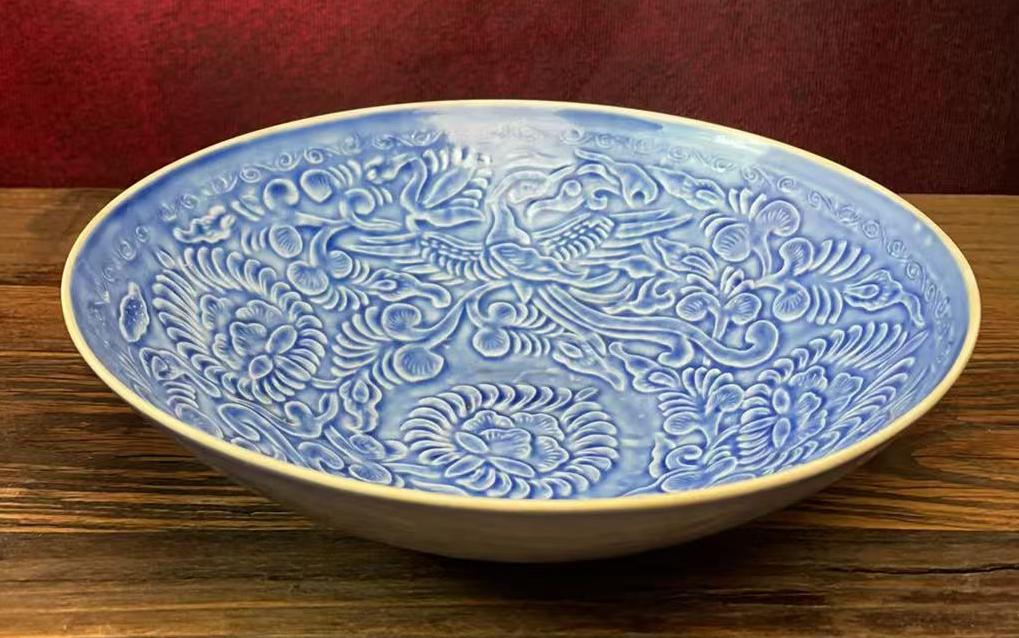 定窑蓝釉凤穿牡丹纹大碗