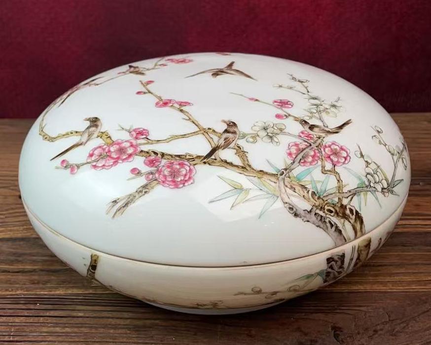 名称:清乾隆粉彩喜鹊登梅纹捧盒