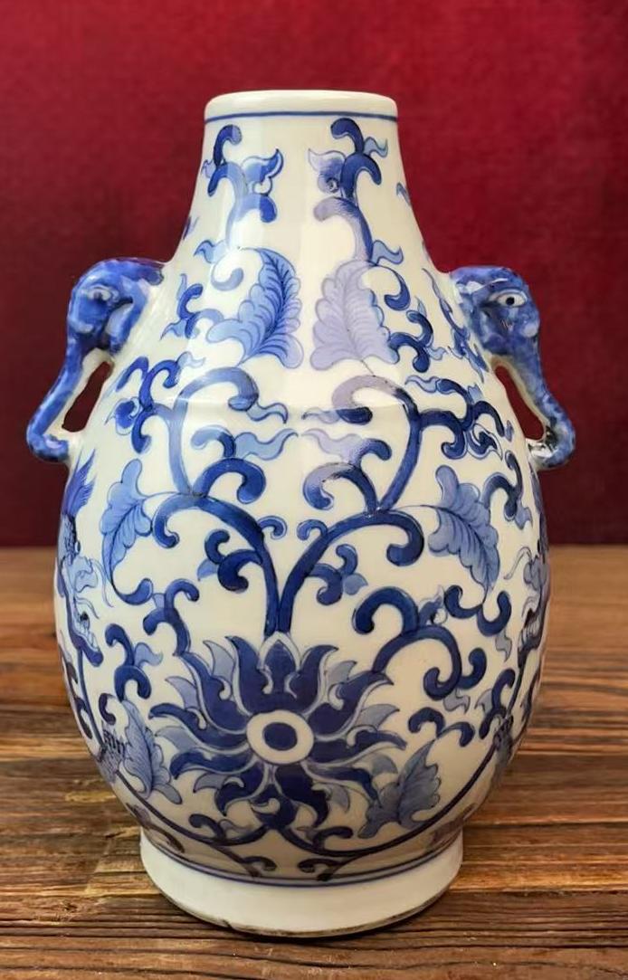 名称:清乾隆青花花卉纹象耳瓶