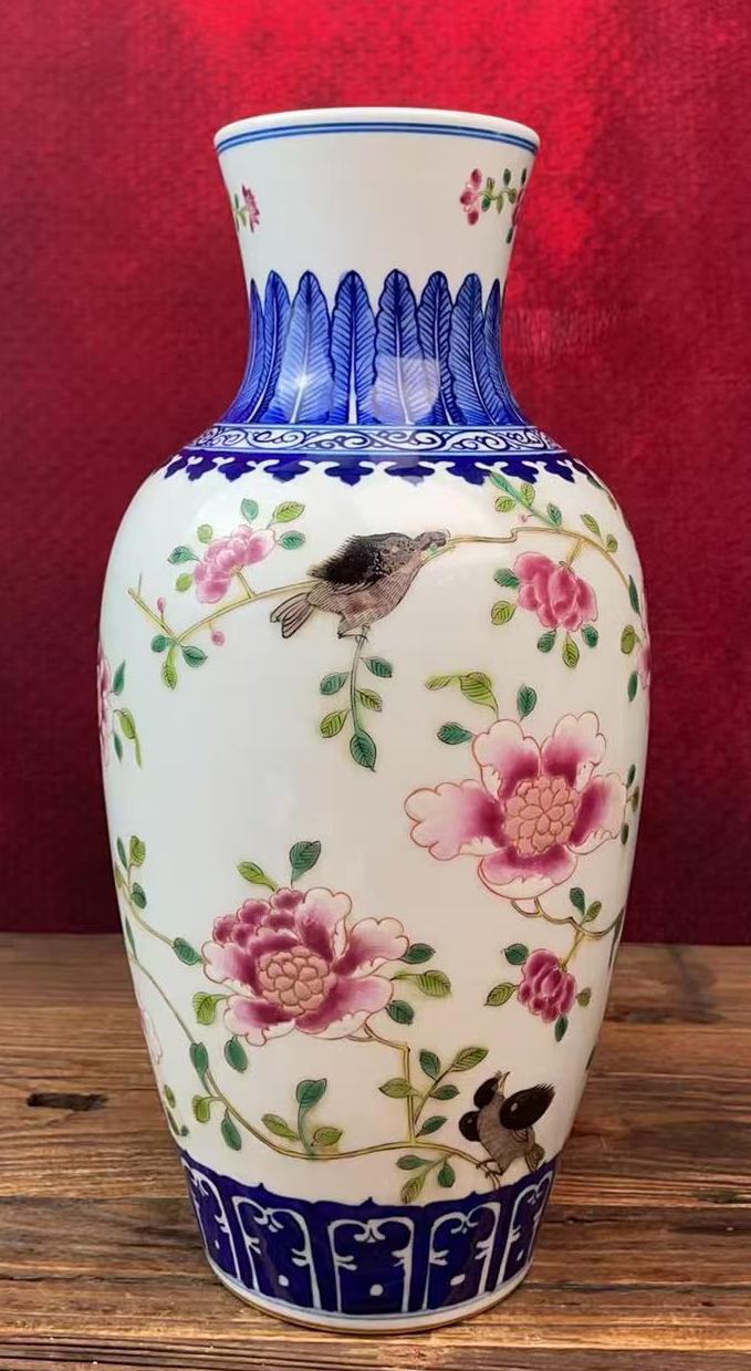 清乾隆青花珐琅彩花鸟纹瓶
