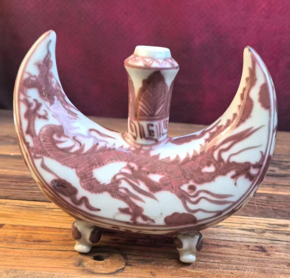 元釉里红龙纹船式壶