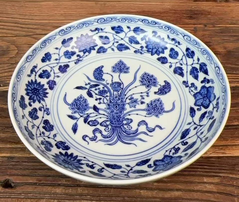 名称:清雍正青花一束莲纹盘
