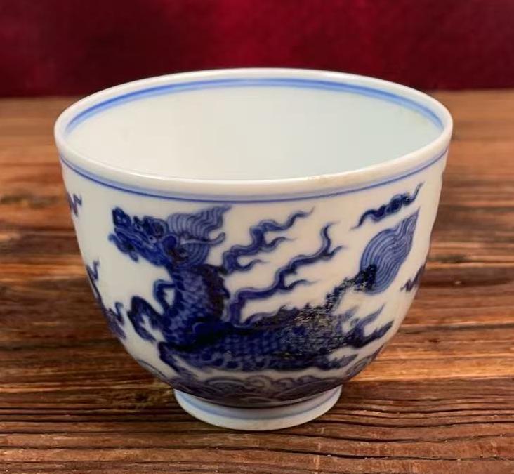 名称:明成化青花麒麟献瑞图杯