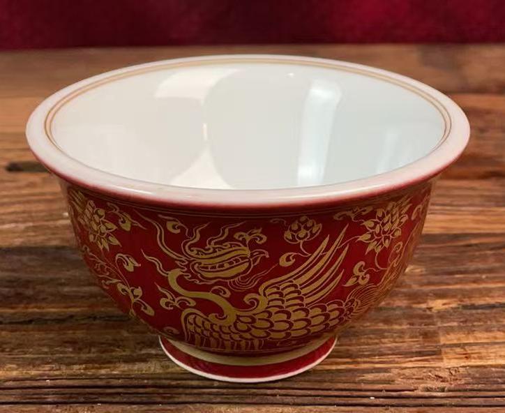 名称:明永乐霁红釉描金凤穿花纹压手杯