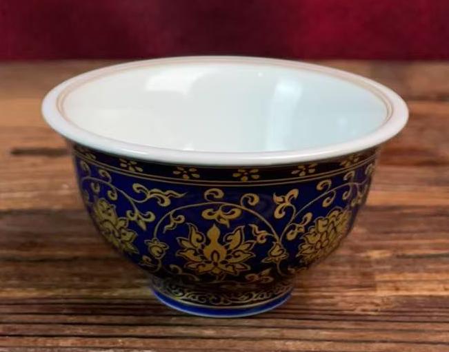 名称:明永乐霁蓝釉描金缠枝莲纹压手杯