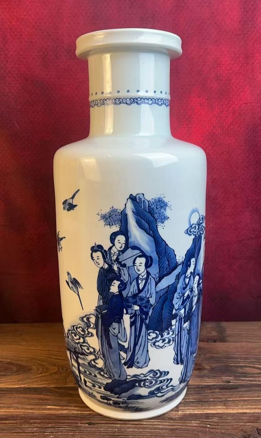 名称:清康熙青花人物棒槌瓶