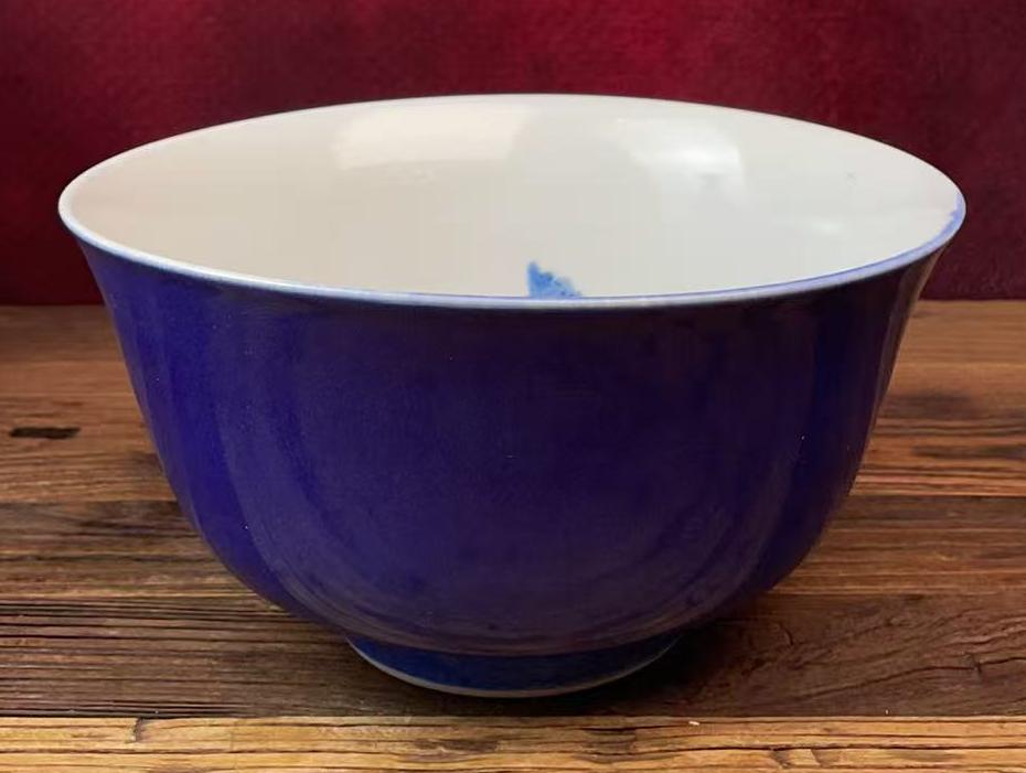 名称:清康熙外蓝釉内青花人物纹碗