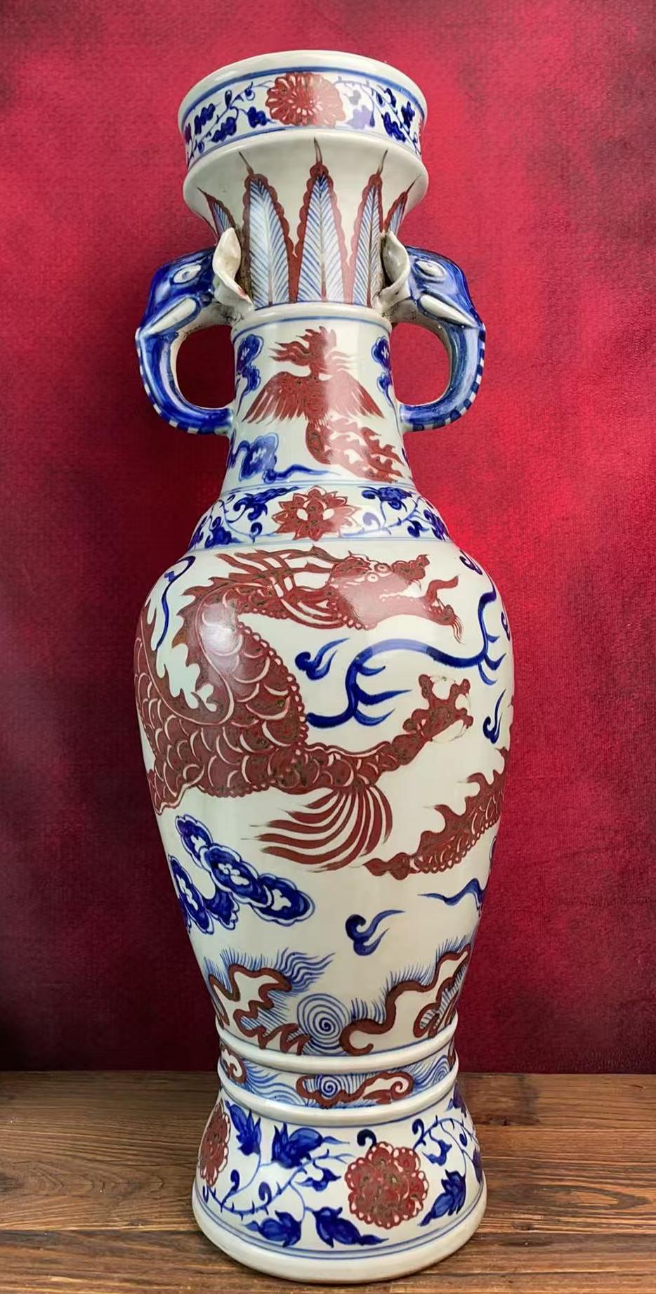 名称:元青花釉里红龙凤纹双耳瓶