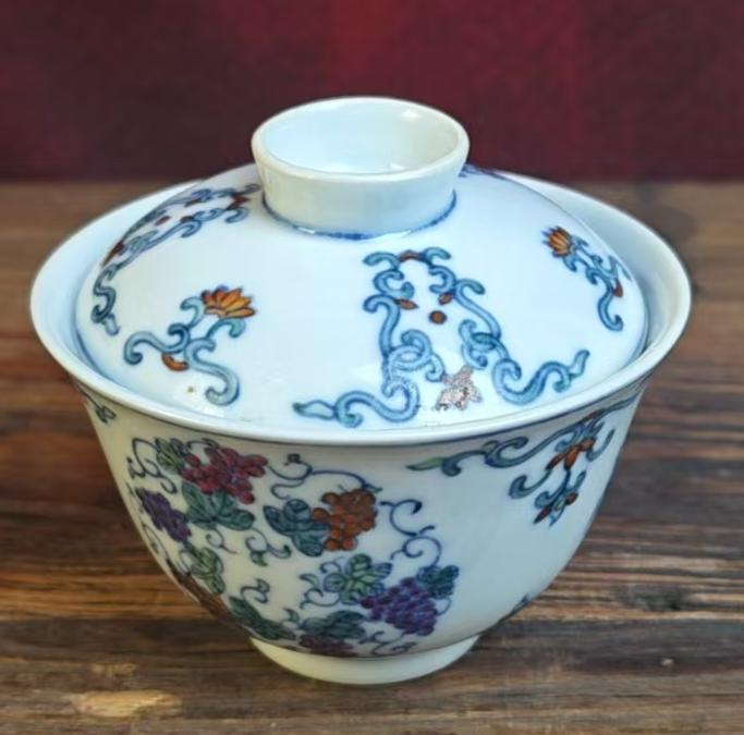 名称:清光绪斗彩葡萄纹盖碗