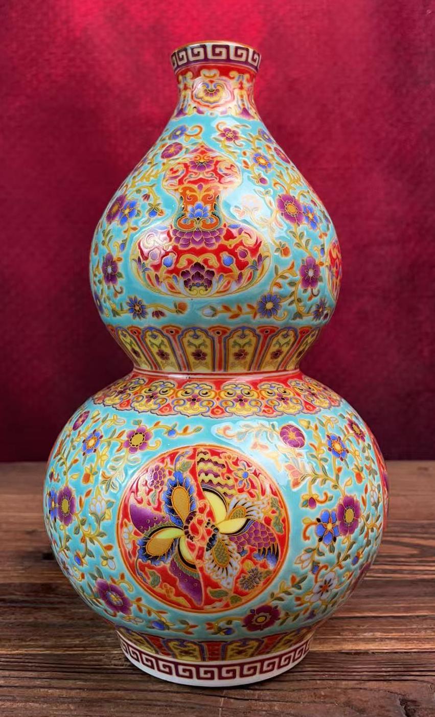 名称:清雍正御制珐琅彩开窗花卉纹葫芦瓶