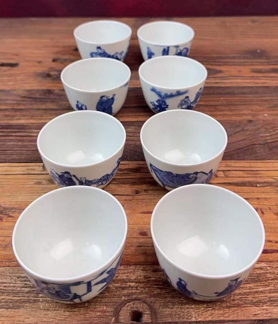 清康熙青花饮中八仙图杯