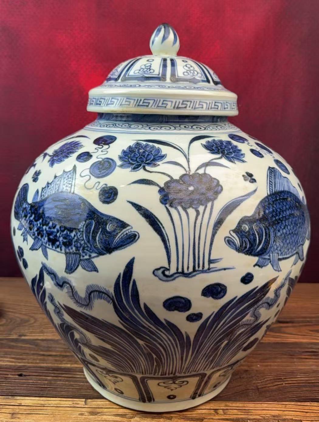 名称:元青花鱼藻纹盖罐