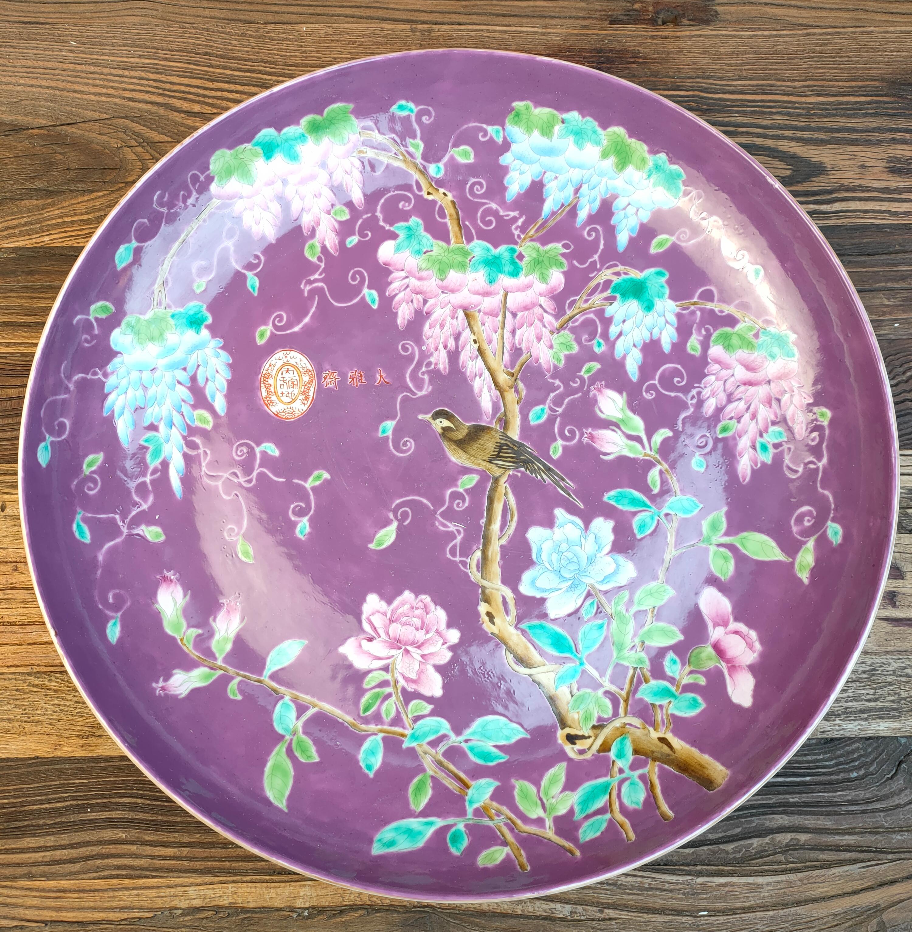 清大雅斋粉彩花鸟纹大盘
