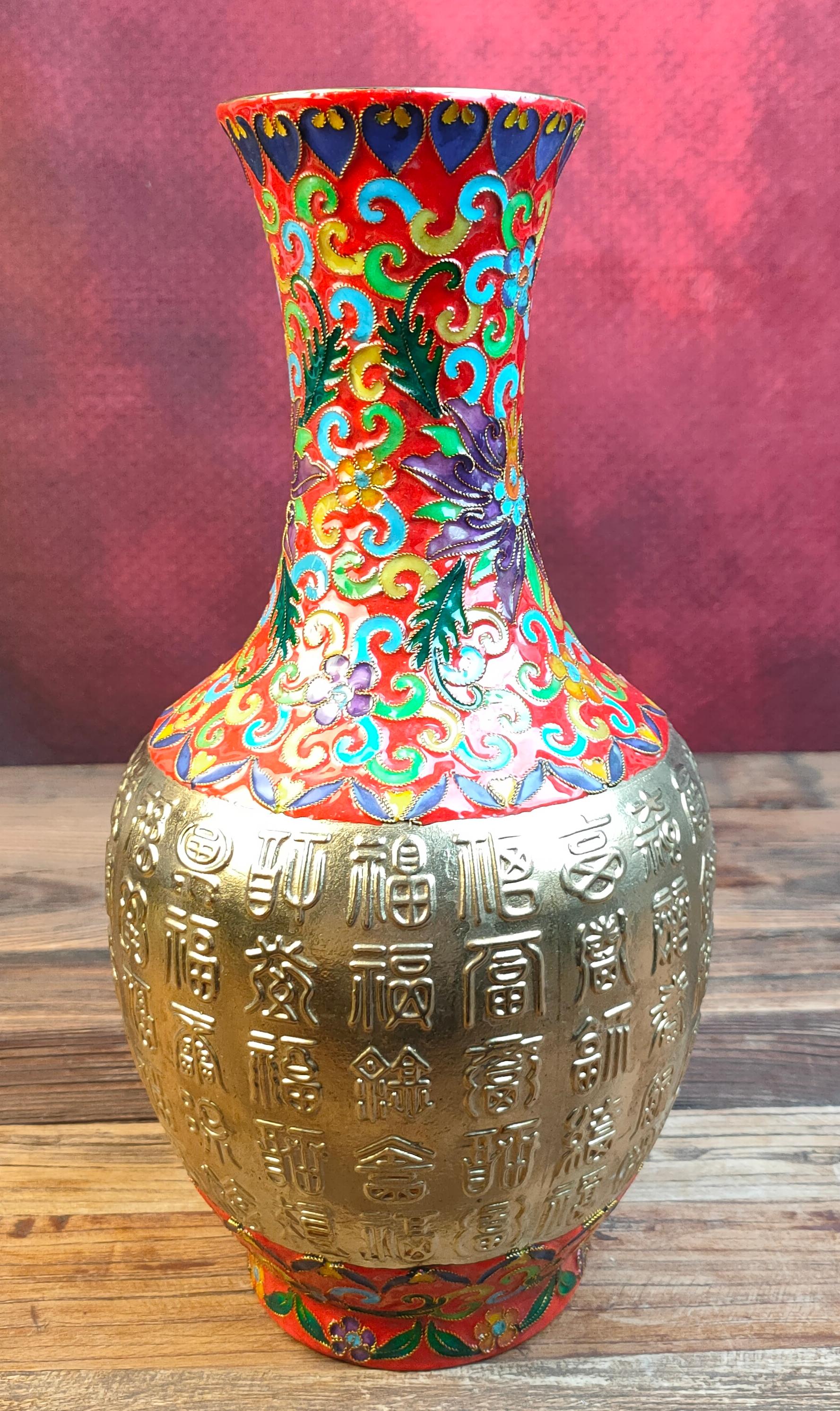 清乾隆掐丝珐琅描金浮雕百福纹长颈瓶