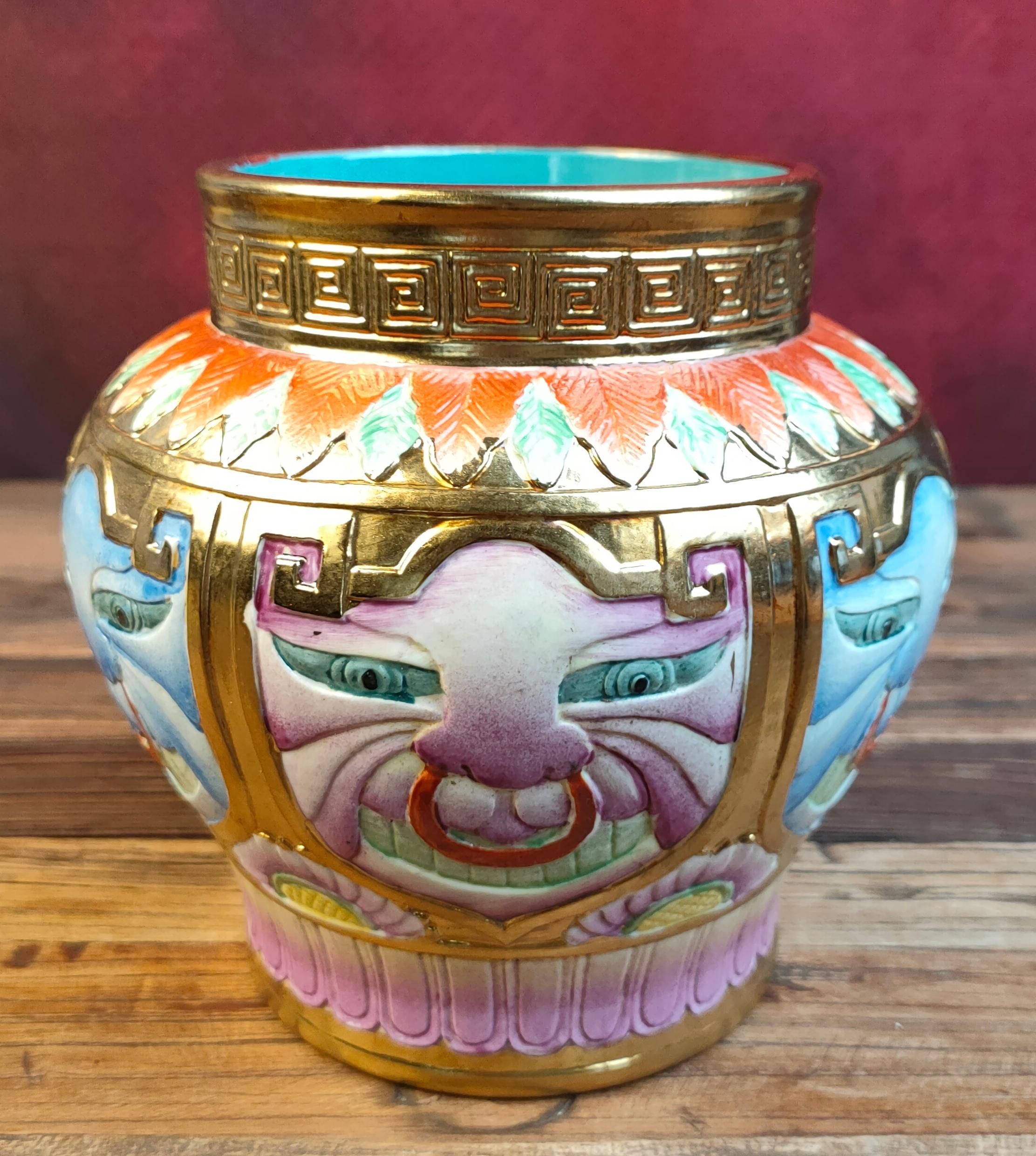 名称:清乾隆粉彩描金浮雕饕餮纹罐