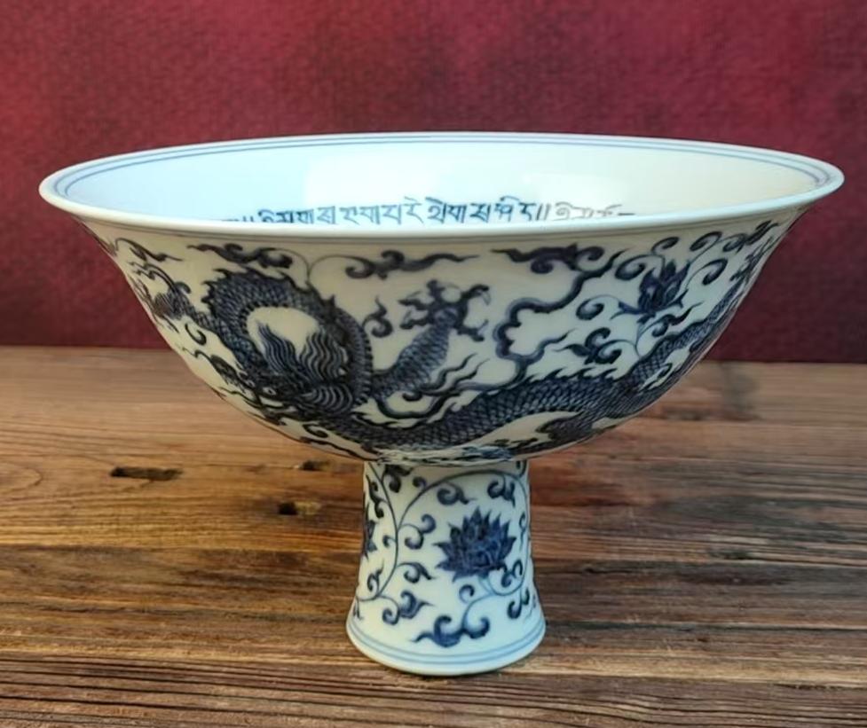 明宣德青花云龙纹高足碗