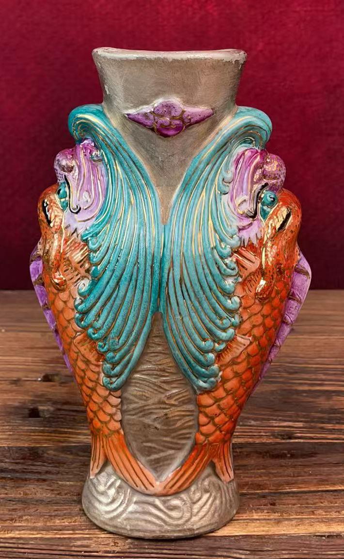 清乾隆珐琅彩描金浮雕双鱼纹扁瓶