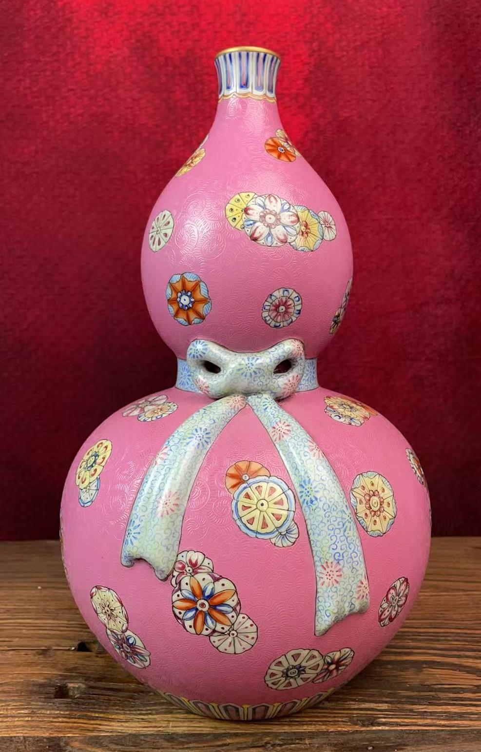名称:清乾隆轧道珐琅彩皮球花纹葫芦瓶