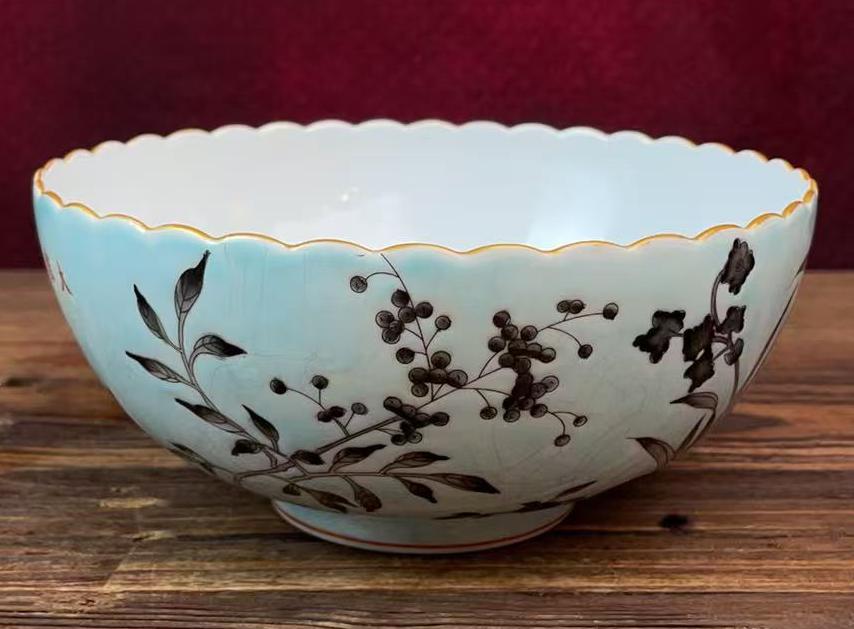 名称:清大雅斋天蓝釉墨彩花卉纹碗